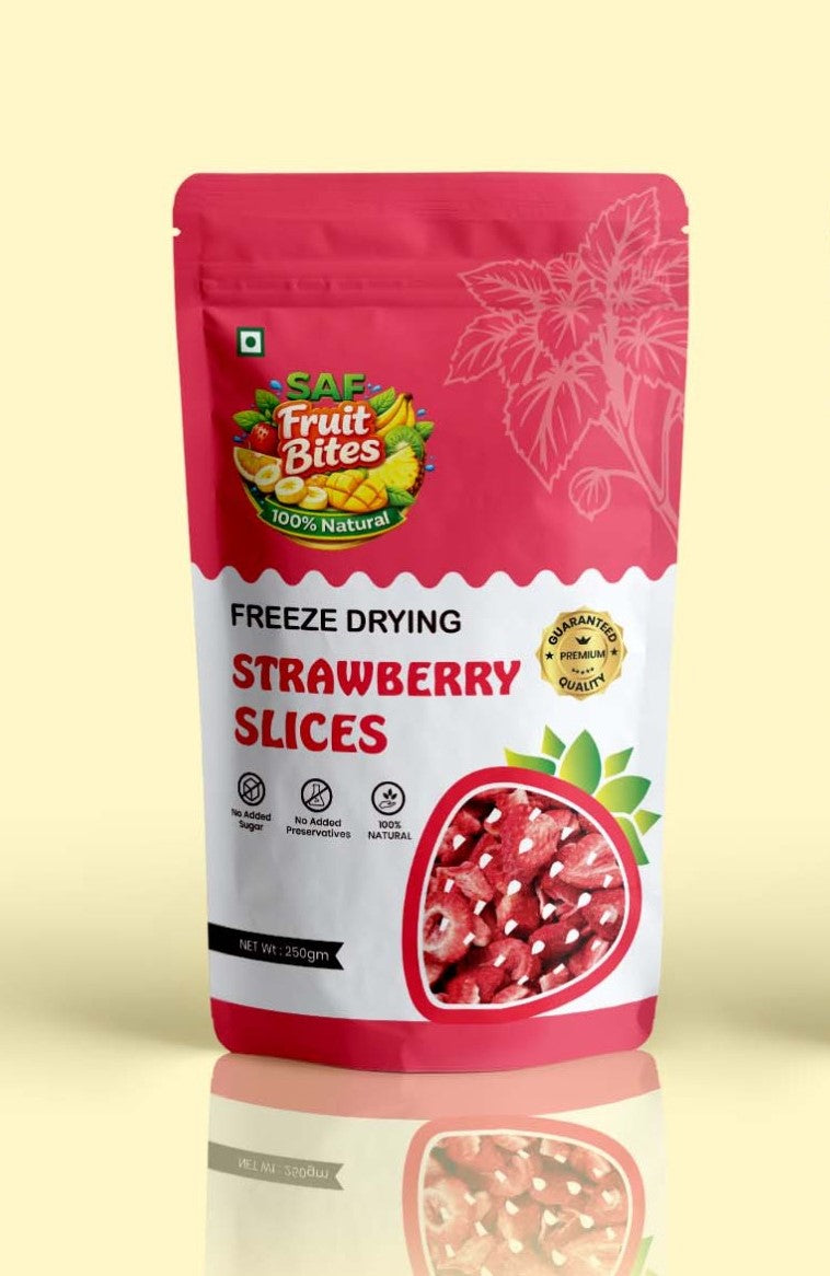Freeze-Dried Strawberry Slices are made from carefully selected ripe strawberries processed using the freeze-drying method, which removes moisture while preserving the fruit’s natural colour, flavour, and nutrients. No added sugar, preservatives, or artificial additives are used.